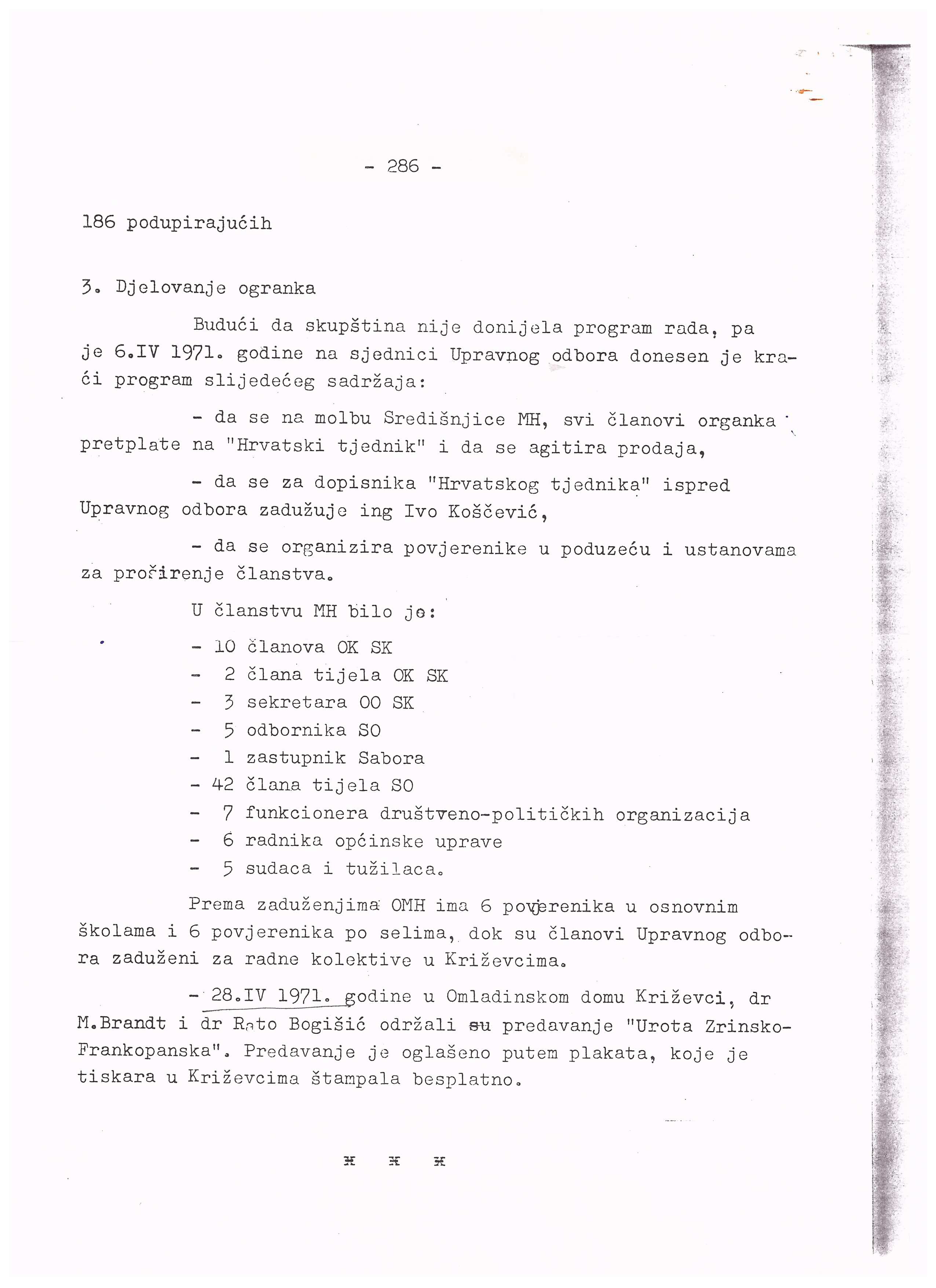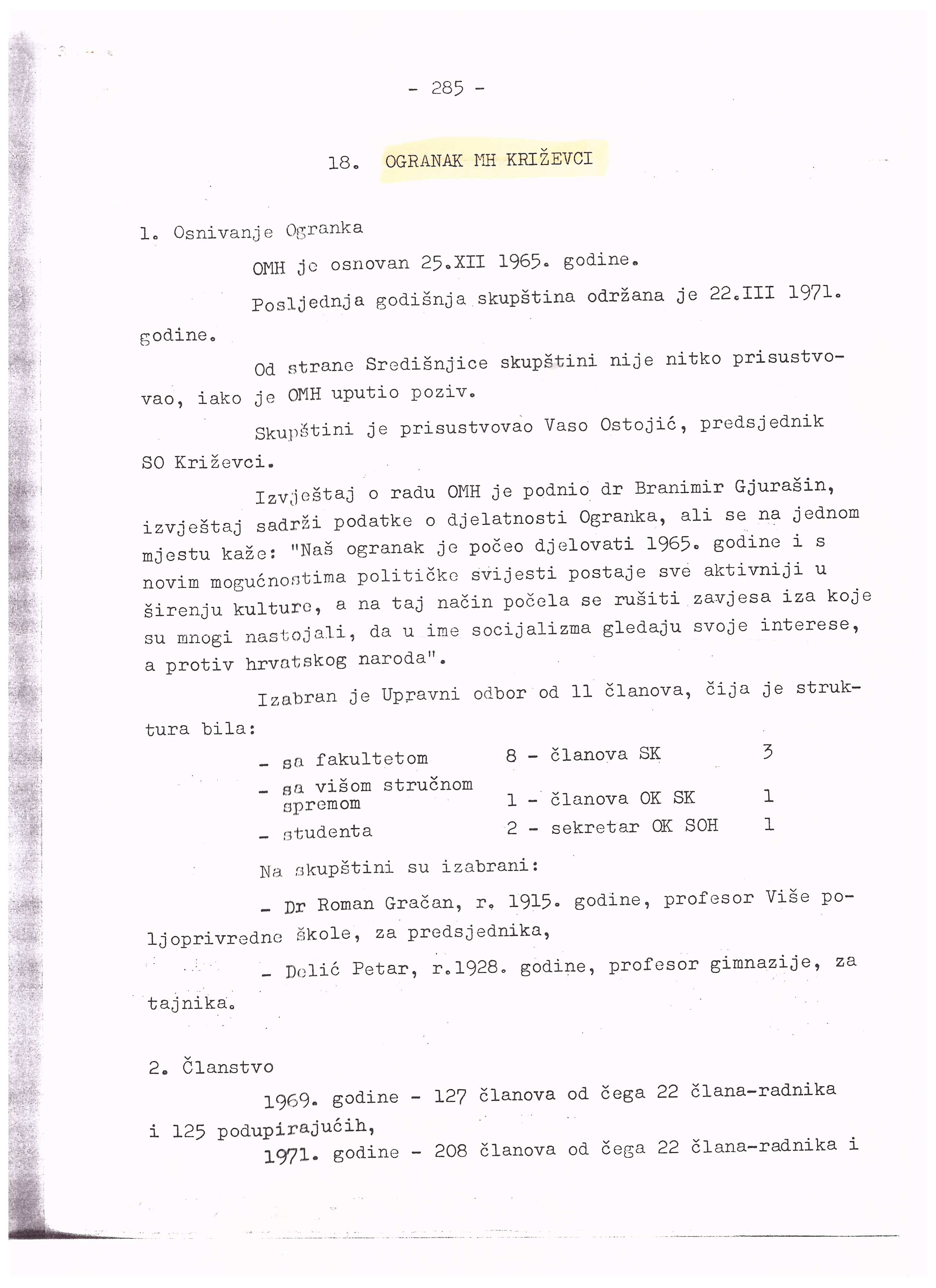 U prisutnosti 60-ak članova izabran je upravni odbor ogranka od sedam članova: mr. sc. Renata Husinec, predsjednica ogranka, Nikola Žulj, prof., tajnik ogranka, Štefica Delić, prof., dr. sc. Valentin Puževski, dr. sc. Ljudevit Plačko, Željko Husinec, dipl. iur. i Branko Tinodi, dipl. iur.