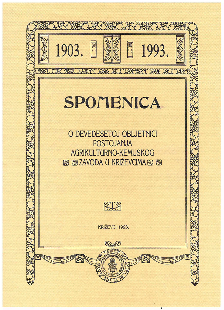 1993. / Godine / Ostalo Spomenica o 90. obljetnici Agrikulturno-kemijskog zavoda u Križevcima 29/09/199330/12/2020 martinarebic Ogranak Matice hrvatske u Križevcima i Poljoprivredni institut u Križevcima objavili su Spomenicu o devedesetoj obljetnici Agrikulturno-kemijskog zavoda u Križevcima. Podjeli ovo: Click to share on X(Otvara se u novom prozoru) X Klikom podijelite na Facebooku(Otvara se u novom prozoru) Facebook Lajk Učitavanje...
