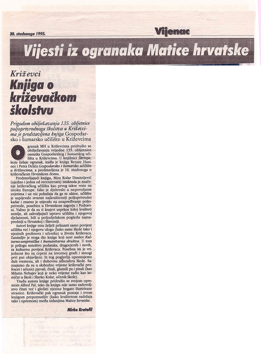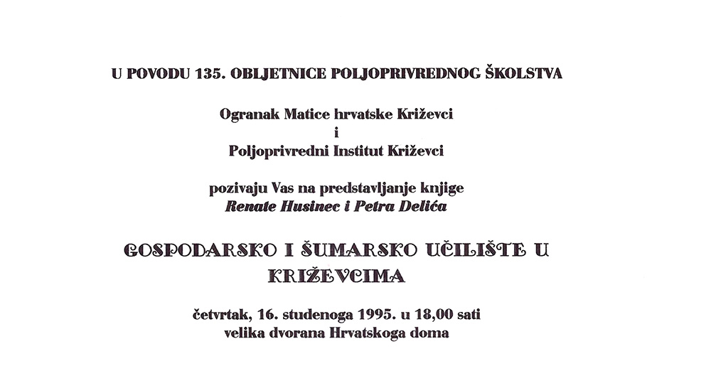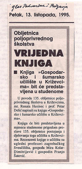 1995. / Predstavljanje publikacija Knjiga o križevačkom školstvu 16/11/199505/01/2021 martinarebic Povodom 135. obljetnice poljoprivrednoga školstva u Križevcima predstavljena je 16. studenoga 1995. u velikoj dvorani Hrvatskoga doma knjiga Renate Husinec i Petra Delića „Gospodarsko i šumarsko učilište u Križevcima”. Podjeli ovo: Click to share on X(Otvara se u novom prozoru) X Klikom podijelite na Facebooku(Otvara se u novom prozoru) Facebook Lajk Učitavanje...