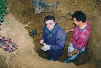 Mjesto zapuštenog groba Zdenčajevih na groblju u Malom Ravnu. Posljednja uputstva prije iskovanja 22. listopada 2002.