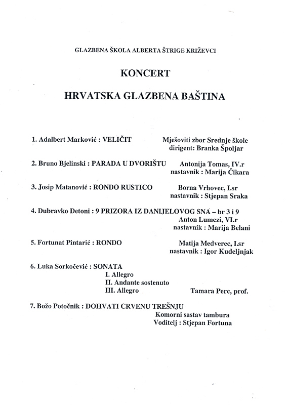 Na programu su se našla djela Markovića, Bjelinskog, Matanovića, Detonija, Pintarića, Sorkočevića i Potočnika.