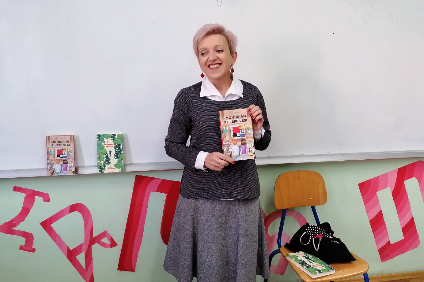 Na početku susreta predsjednica Ogranka Renata Husinec pozdravila je učenike i pročitala im kratku biografiju autorice. Spisateljica je učenicima približila svoj najnoviji dječji kriminalistički roman „Mondrian iz Lepe Vesi” i nagrađeni roman „Putovanje u mjestu”, a zatim je odgovarala na brojna zanimljiva pitanja o svome stvaralaštvu i životu. Otkrila je učenicima da se trudi pisati romane koji će biti zanimljivi i zabavni, ali joj je, jednako tako, važno da nenametljivo daju pouku o životnim vrijednostima kao što su, naprimjer, prihvaćanje različitosti, suočavanje s problemima, odgovornost, pomaganje drugima… Objasnila je djeci i proces nastanka knjige, od pisanja rukopisa, ilustriranja i opremanja do tiskanja knjige. Govorila je i o početcima svojega stvaralaštva, o biranju naslova i imena likova, o promociji svojega zavičaja kao mjesta radnje u knjigama koje piše, a učenike je zanimalo i koje je knjige voljela čitati u djetinjstvu, pa im je spisateljica preporučila za čitanje naslove svojih najdražih romana. Na kraju susreta učenici su imali priliku kupiti „Mondriana” i obogatiti police svojih biblioteka knjigom s potpisom autorice.