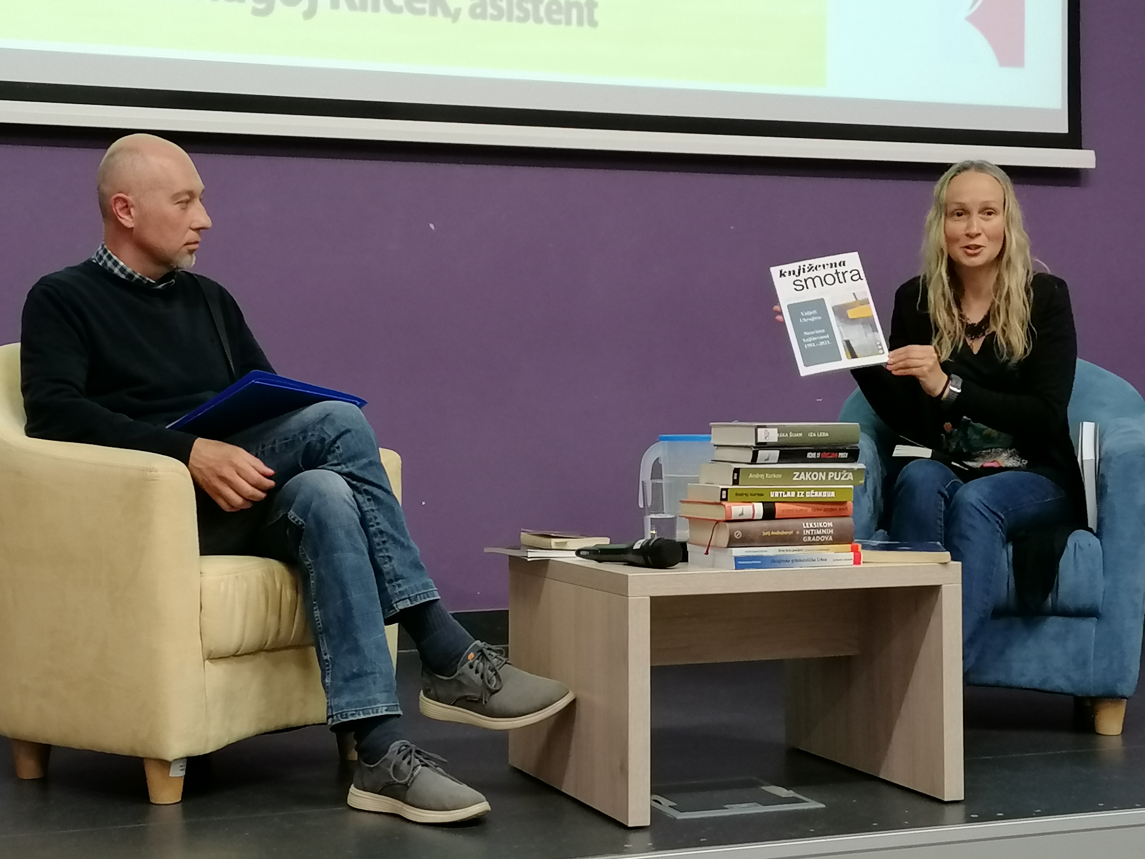 Domagoj Kliček govorio je o ukrajinskoj književnosti od srednjega vijeka do 20. stoljeća predstavivši najznačajnije pisce pojedinih razdoblja. Započeo je s Grigorijem Skovorodom, baroknim književnikom i filozofom koji je putovao Ukrajinom 25 godina kako bi upoznao ljude i zemlju (“Svijet me lovio, ali me nije ulovio.”). Uslijedio je prikaz Ivana Petroviča Kotljarevskog, autora djela Eneida koje je svojevrsna enciklopedija ukrajinske stvarnosti njegova vremena i kojim je pokazao da se vrhunska djela mogu stvarati i na ukrajinskome (a ne samo na ruskome) jeziku. Razdoblje romantizma (u pjesništvu) i realizma (u prozi) u jednoj osobi predstavlja Jevgen Grebinka. Mnoge su mu pjesme uglazbljene i danas se izvode, a jedna je od poznatijih Oči černye, oči strastnye. Zanimljivo je bilo saznati da je slavni ruski književnik Nikolaj Vasiljevič Gogolj zapravo Ukrajinac i da je u mladosti puno pisao o domovini. I pri kraju života (a umro je mlad) silno se želio vratiti u rodnu Ukrajinu. Grygorij Kvitka-Osnovjanenko jedan je od osnivača harkivskoga profesionalnoga kazališta, javne knjižnice i prvoga ukrajinskoga časopisa. Svoja glavna djela (80 romana, pripovijetke, komedije i dr.) napisao je na ukrajinskome.