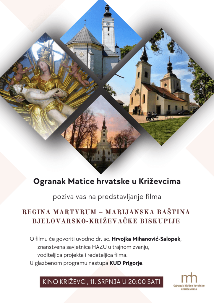 Ogranak Matice hrvatske u Križevcima organizirao je u križevačkom kinu 11. srpnja predstavljanje i prikazivanje dokumentarno-edukativnoga filma Regina martyrum – Marijanska baština Bjelovarsko-križevačke biskupije. Predstavljanju je nazočila dr. sc. Hrvojka Mihanović-Salopek, autorica filma i predsjednica Društva hrvatskih književnika. U glazbeno-plesnom dijelu programa nastupio je KUD Prigorje.