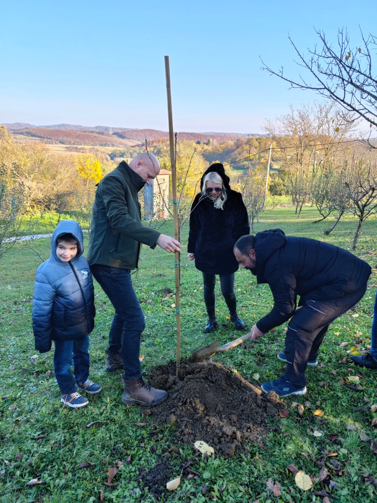 Prije same sadnje okupljenim mještanima, učenicima i učiteljima obratila se predsjednica Ogranka MH u Križevcima Renata Husinec otkrivši kako je do inicijative došlo nakon predavanja o šumama koje je Ogranak organizirao prošlog mjeseca, a na kojemu je izrečen podatak do svaki čovjek godišnje udahne onoliko kisika koliko proizvedu dva stabla. Tada se rodila ideja kako bi bilo lijepo da svaki čovjek vrati prirodi što joj uzima sadnjom barem jednoga stabla, što je kasnije preraslo u inicijativu da svaki ogranak Matice u svojoj lokalnoj zajednici posadi stablo. Križevački je Ogranak za sadnju svojih stabala odabrao Područnu školu Vojakovački Osijek, koja je prošle godine imala jedan od najljepših školskih vrtova u Hrvatskoj.