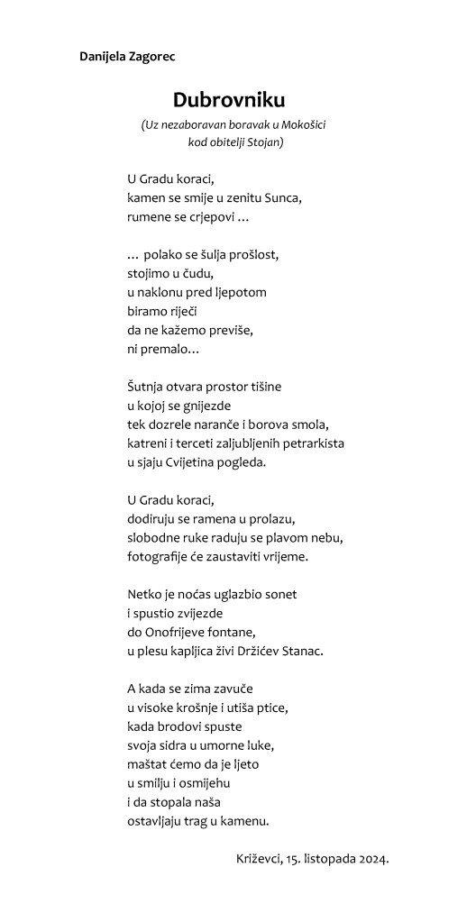 Doživljaj Dubrovnika ostat će zabilježen u pjesmi Danijele Zagorec: