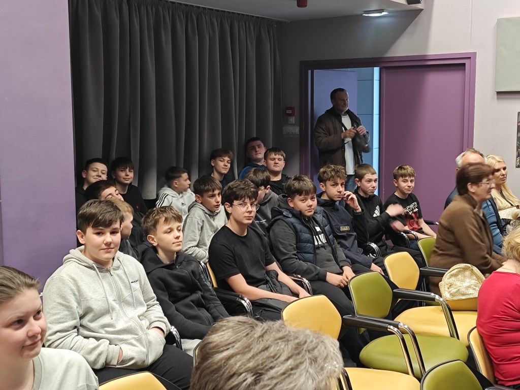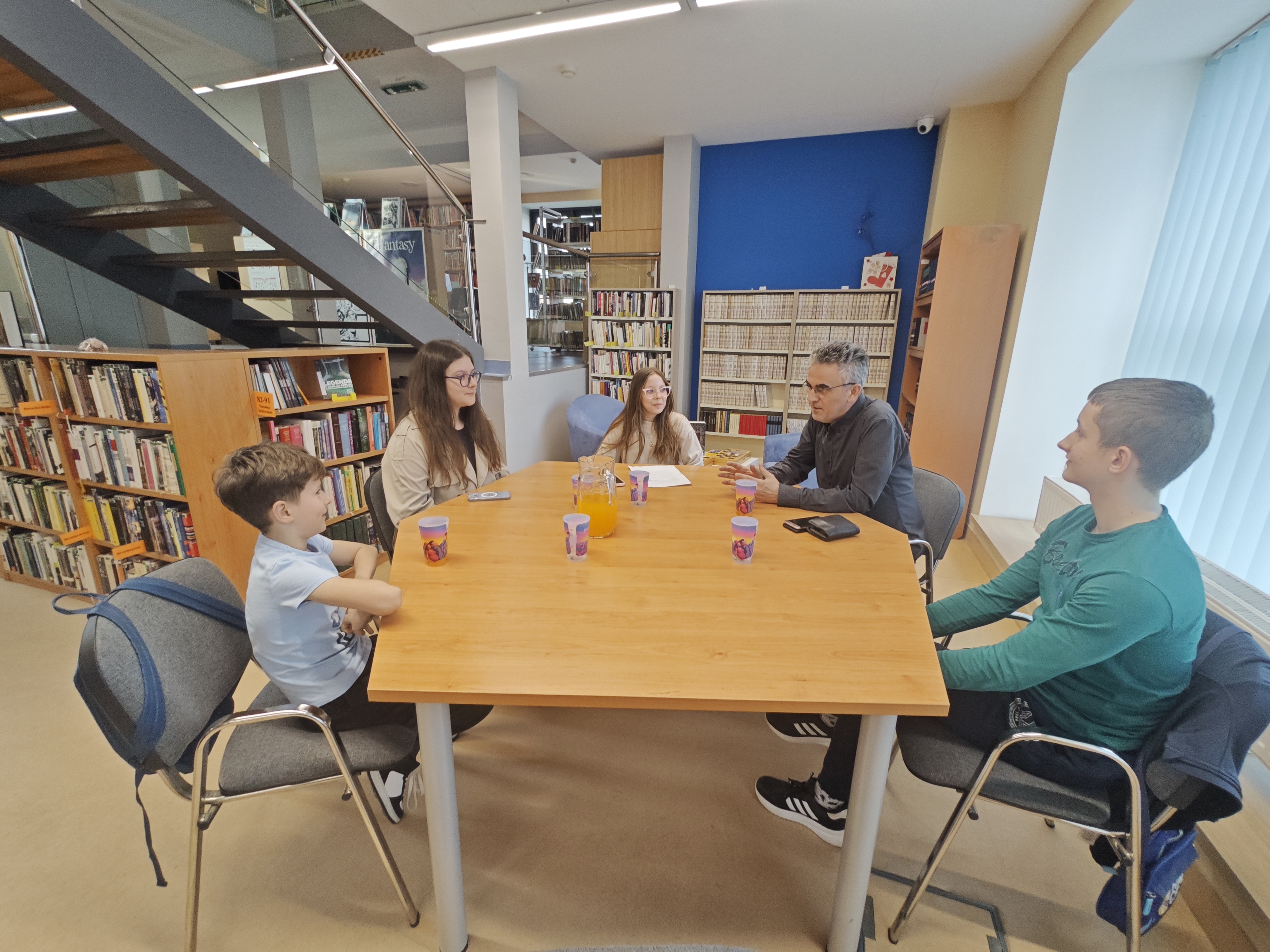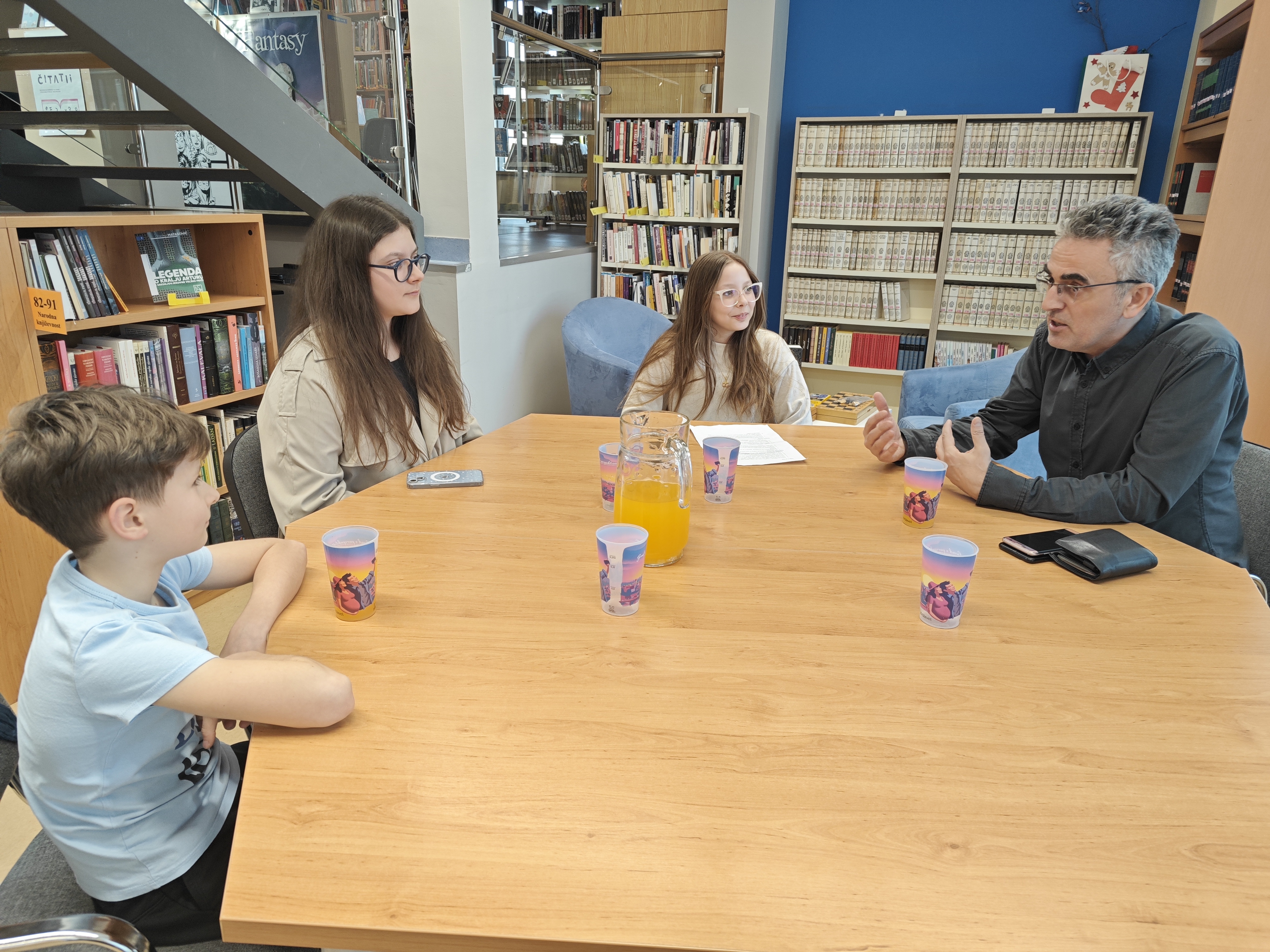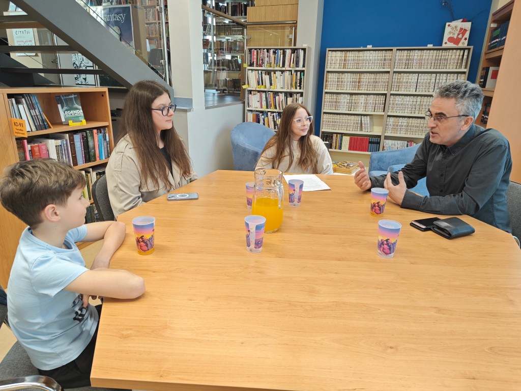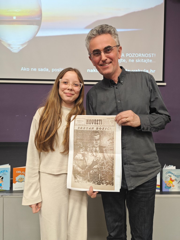 Prije predavanja učenici OŠ Ljudevita Modeca iskoristili su ovu jedinstvenu priliku i intervjuirali Zorana Vakulu. Učenica Ema Pengov vodila je razgovor uz podršku svojih prijatelja Lane Bedoić, Lovre Radičeka i Jone Rebića te učiteljice Martine Valec-Rebić.