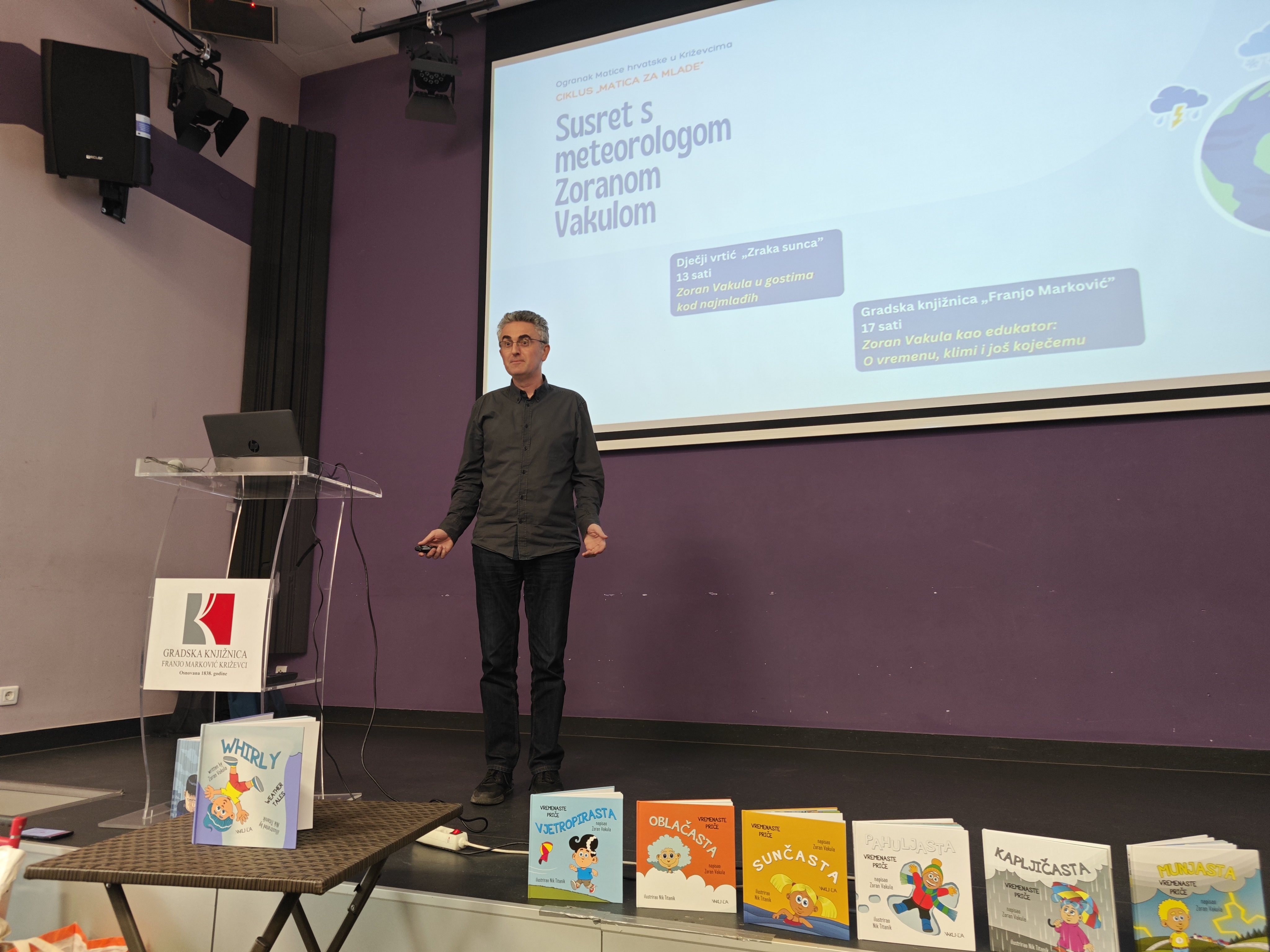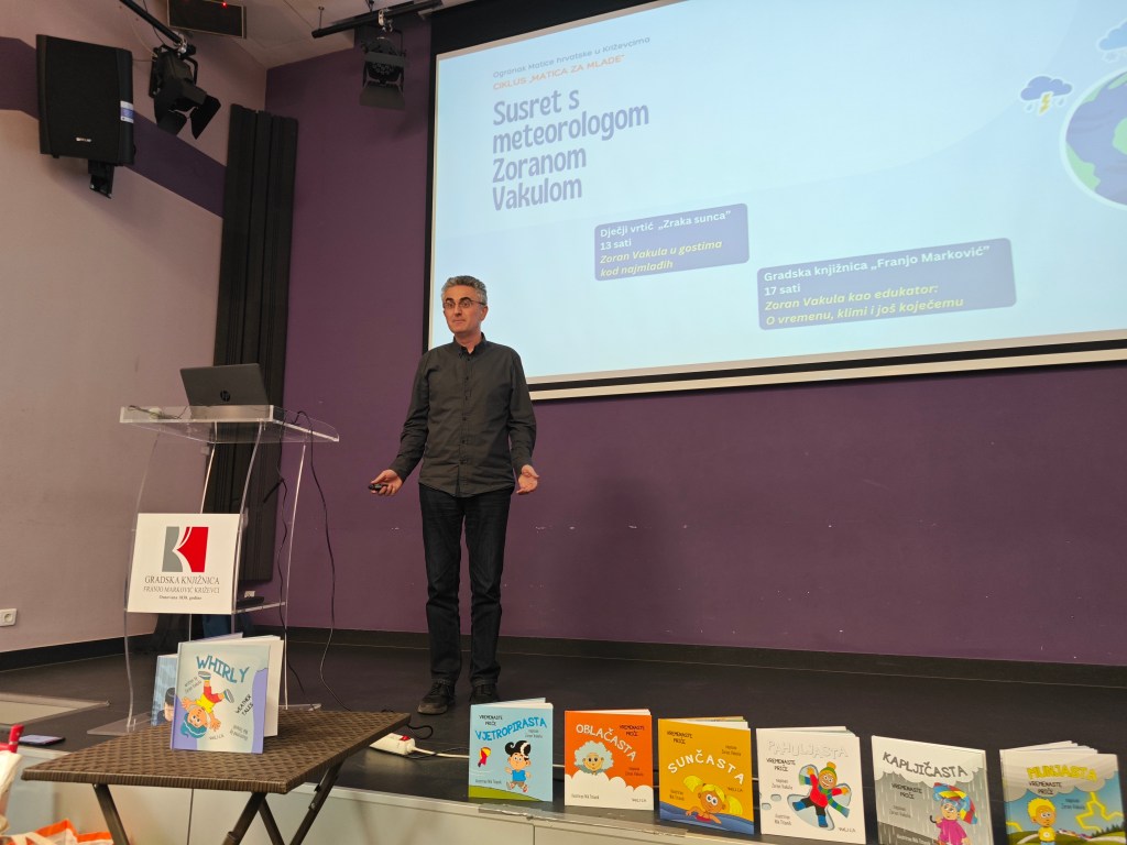 U sklopu novog ciklusa „Matica za mlade” Ogranka Matice hrvatske u Križevcima održano je u petak 13. ožujka 2026. u Gradskoj knjižnici „Franjo Marković” zanimljivo predavanje poznatog meteorologa Zorana Vakule pod naslovom „O vremenu, klimi i još koječemu”.
