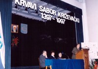 Predsjednik hrvatskoga Sabora akademik Vlatko Pavletić otkrio je u četvrtak u Križevcima, na 600. obljetnicu Krvavog sabora, spomen-ploču u crkvi Sv. Križa i položio vijenac. U saborskome izaslanstvu, koje je bilo nazočno obilježavanju obljetnice, bili su i Žarko Domljan, Dražen Budiša, Stjepan Radić, Ivan Aralica, a izaslanik predsjednika hrvatske Vlade bio je Ivan Majdak. Krvavi sabor, po Pavletićevim riječima, svjedoči o burnim vremenima u stvaranju hrvatske države i hrvatske nacije. U obilježavanje obljetnice toga povijesnoga događaja uključen je i znanstveni skup te kulturne manifestacije. Na sastanku s predstavnicima Koprivničko-križevačke županije i Križevaca, predsjednik Sabora je poručio da taj kraj u svome razvoju treba iskoristiti prirodne prednosti i vlastite stručnjake. Na znanstvenom skupu u Hrvatskom domu u Križevcima, koji je pripremila HAZU i Matica hrvatska, osvijetljene su prilike u Hrvatskoj u srednjem vijeku s naglaskom na Krvavi sabor u Križevcima godine 1397., kada je hrvatsko-ugarski kralj Sigismund na prijevaru ubio hrvatske plemiće koji su mu se suprotstavili.