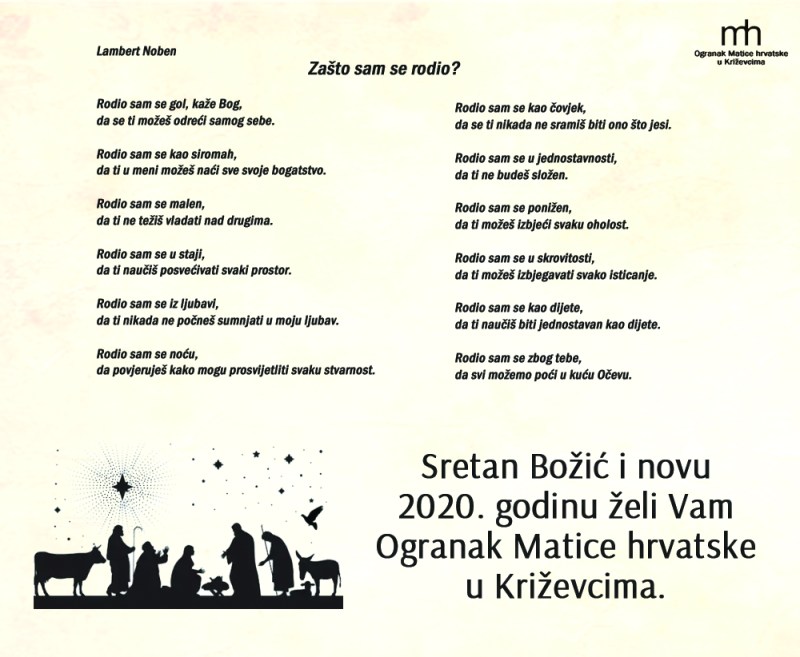 U četvrtak 19. prosinca 2019. održana je izborna skupština Ogranka Matice hrvatske u Križevcima, na kojoj je za predsjednicu ponovo izabrana mr. Renata Husinec, potpredsjednica je Martina Valec-Rebić, a tajnica Danijela Zagorec. Izabrano je i osam članova Predsjedništva: Marijana Ivanek Martinčić, Franjo Husinec, Iva Rupčić, Branka Špoljar, Đurđica Trbus, Tomislav Stipić, Tihomir Pleša i Zoran Kovač, dok su članovi Nadzornog odbora Željko Štubelj, Stjepan Palijan i Josip Trbus.